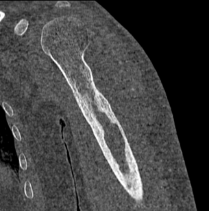 29 Y/ Male complaining of patient with pain and swelling in the left arm region previously treated for osteomyelitis of the left humerus.